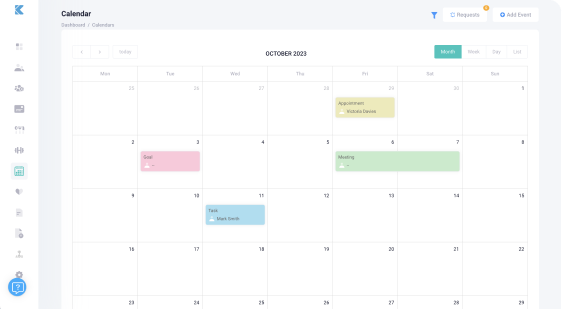 Schedule events, goals, appointments and more with your clients. Receive notifications ahead of time and on the day.