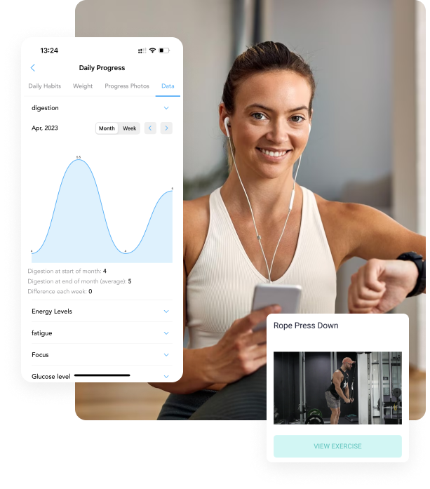 You can easily create customized forms for all of your clients' weekly check-ins and daily accountability check-ins. You can add as many metrics and fields as you want, making sure you're gathering all the information you need to support your clients' goals. Plus, you can track all the data points on your dashboard and in your app, giving you a clear overview of your clients' progress. Set actionable daily habits or create comprehensive forms for you clients to complete directly in your branded app. You can even compare check-ins side by side to see how your client is progressing week to week.